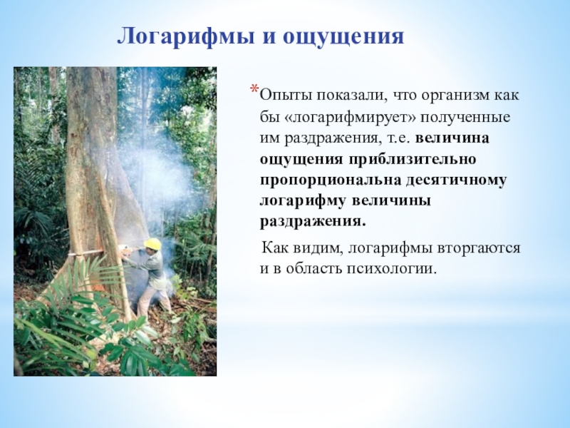 Опыты показали, что организм как бы «логарифмирует» полученные им