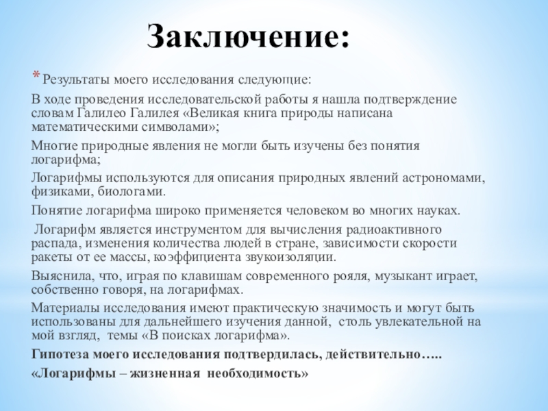 Многие природные явления не могли быть изучены без понятия логарифма;