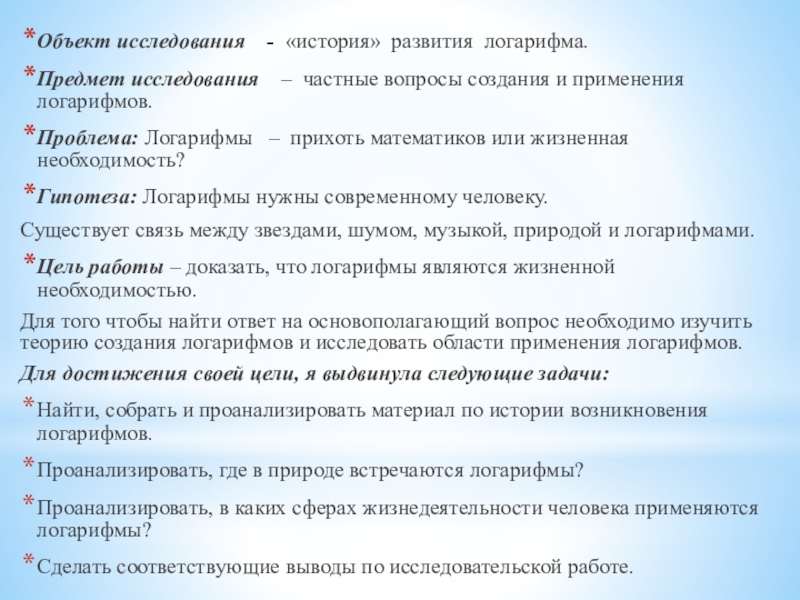 Для того чтобы найти ответ на основополагающий вопрос необходимо изучить теорию создания логарифмов и исследовать области применения логарифмов.