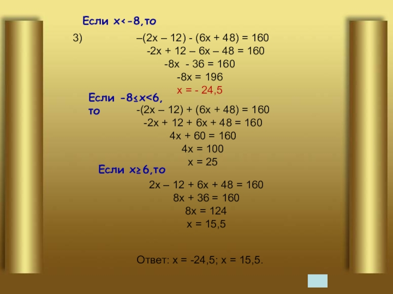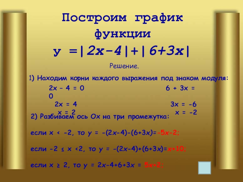 если х < -2, то у = -(2х-4)-(6+3х)=-5х-2;
