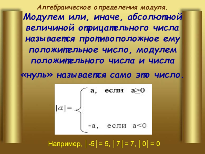 Например, │-5│= 5, │7│= 7, │0│= 0