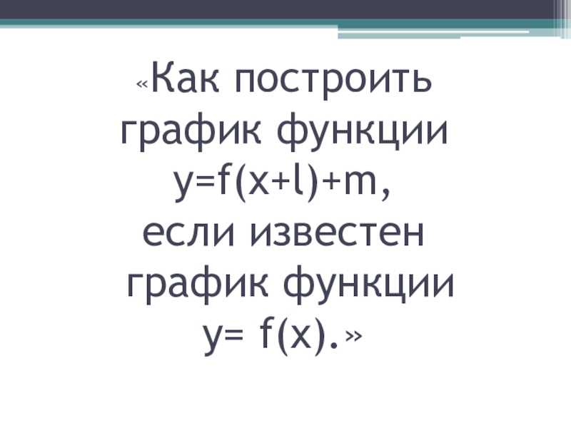 Слайд 1 «Как построить график функции y=f(x+l)+m, если известен график функции y= f(x).»