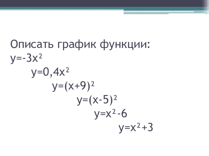 Слайд 4Описать график функции: y=-3x² y=0,4x²
