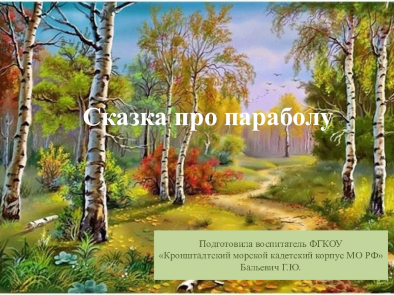 Сказка про параболуПодготовила воспитатель ФГКОУ «Кронштадтский морской кадетский корпус МО РФ» Бальевич Г.Ю.