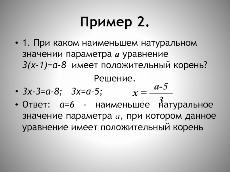 1. При каком наименьшем натуральном значении параметра а корнем уравнения