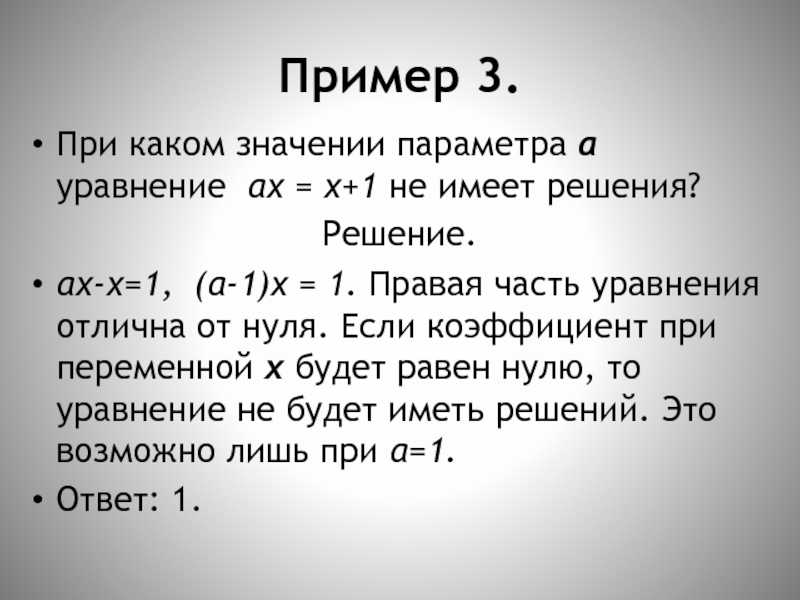 При каком значении параметра а уравнение ах = х+1 не