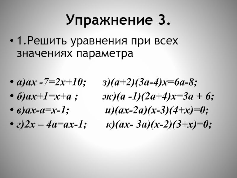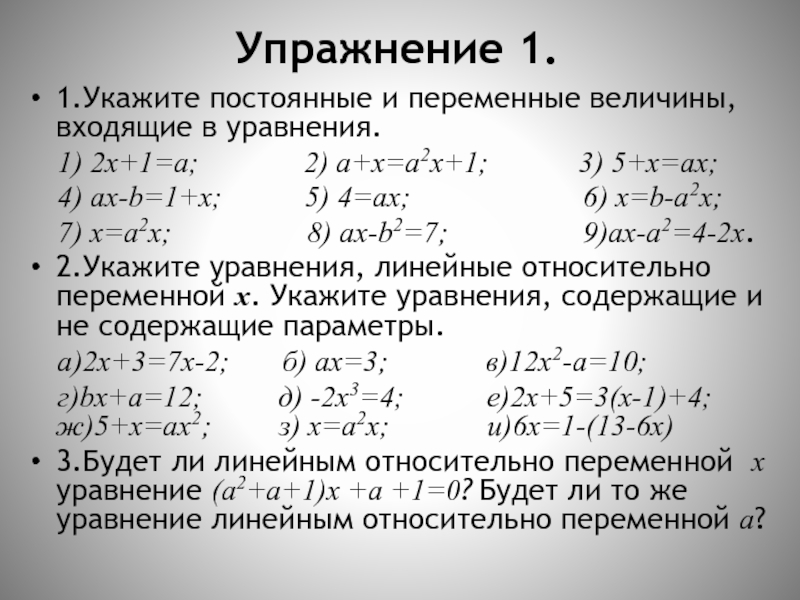 2.Укажите уравнения, линейные относительно переменной х. Укажите уравнения, содержащие и не содержащие параметры.