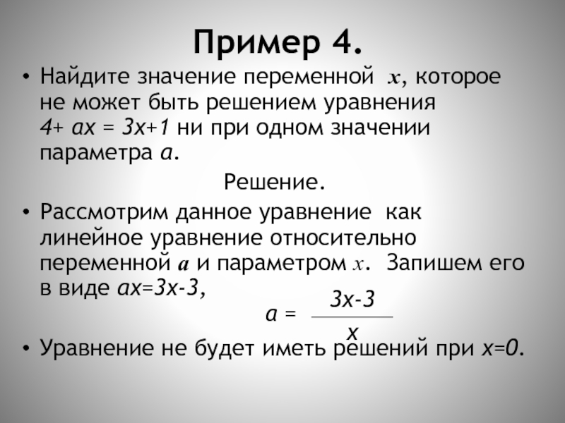 4+ ах = 3х+1 ни при одном значении параметра а.