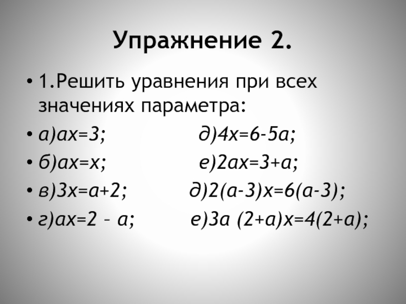 в) ах=2х+1; г) 2ах+3 = 2а –х.