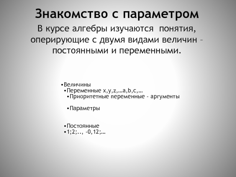 Слайд 3Знакомство с параметром