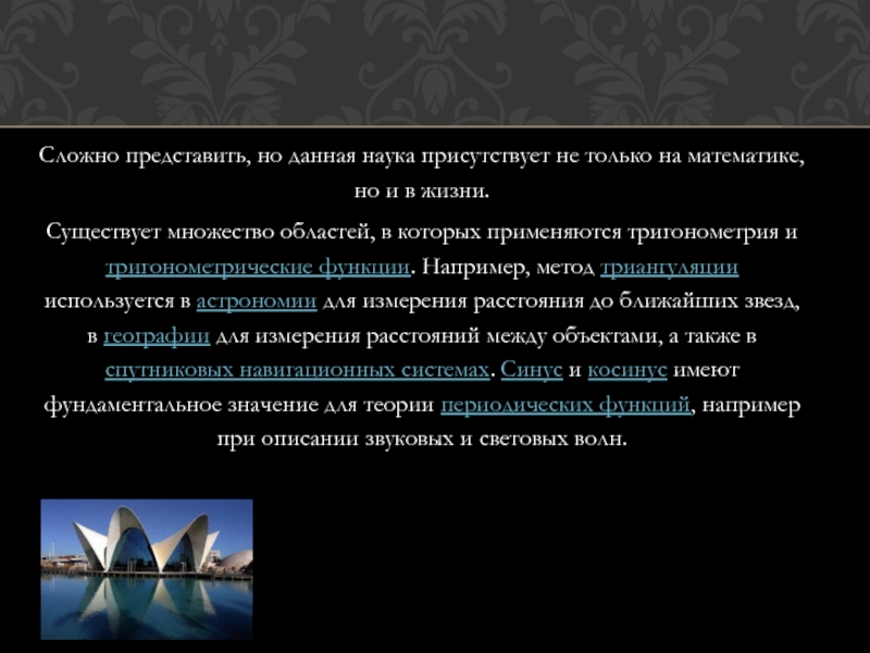 Слайд 4Тригонометрия или тригонометрические функции используются в астрономии (особенно для расчётов положения