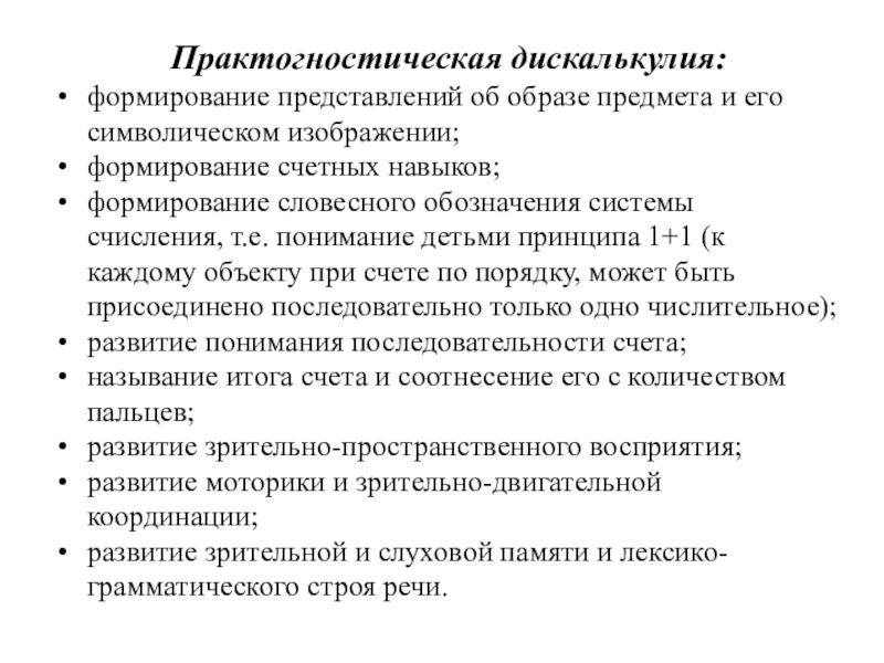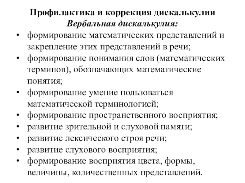 Слайд 13 Решающее значение в коррекции дискалькулии играет проведение специального комплекса
