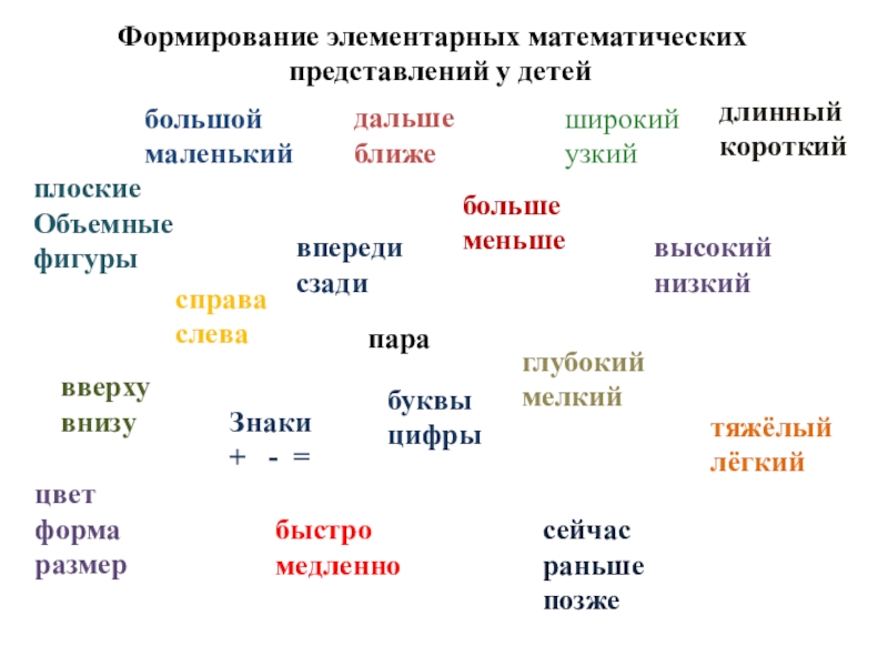 формирование понимания слов (математических терминов), обозначающих математические понятия;