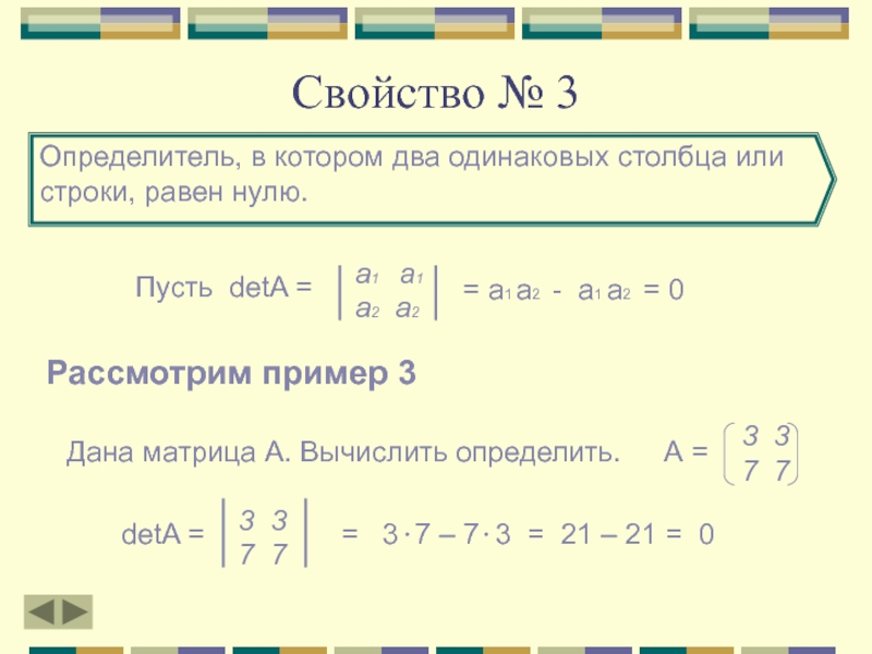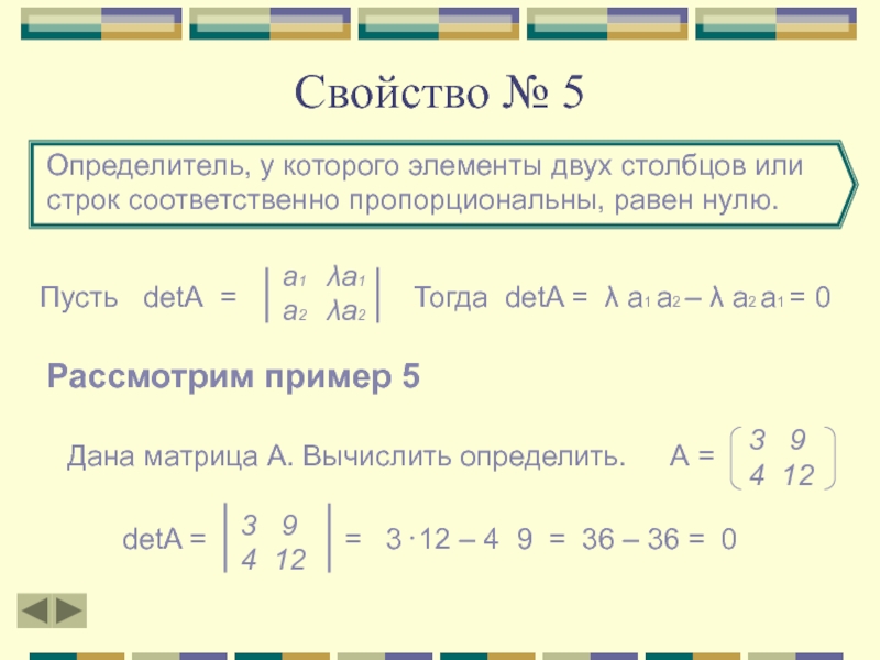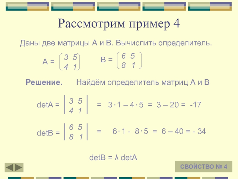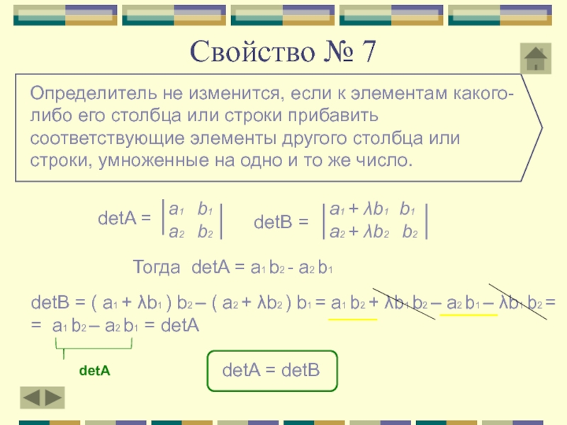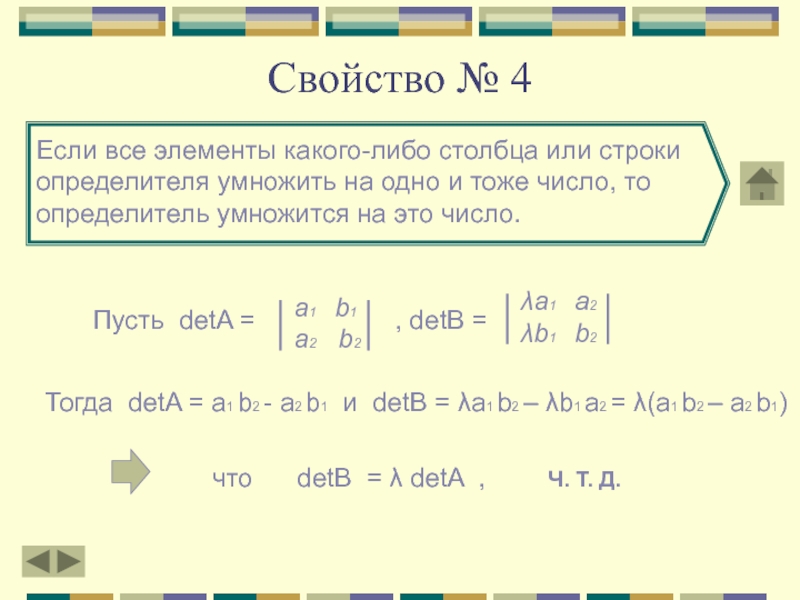 Тогда detA = a1 b2 - a2 b1 и detB = λa1 b2 – λb1 a2 = λ(a1 b2 – a2 b1)