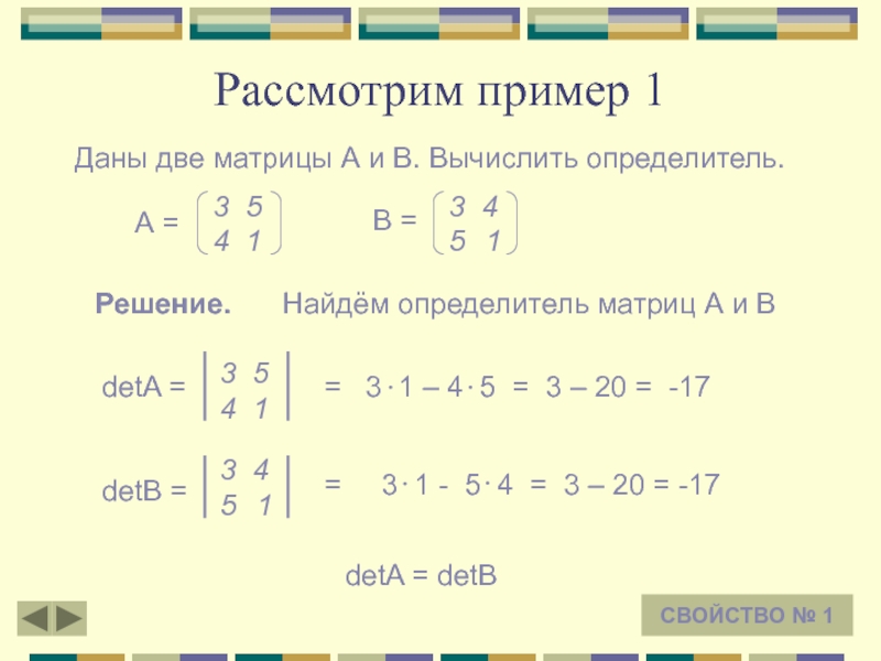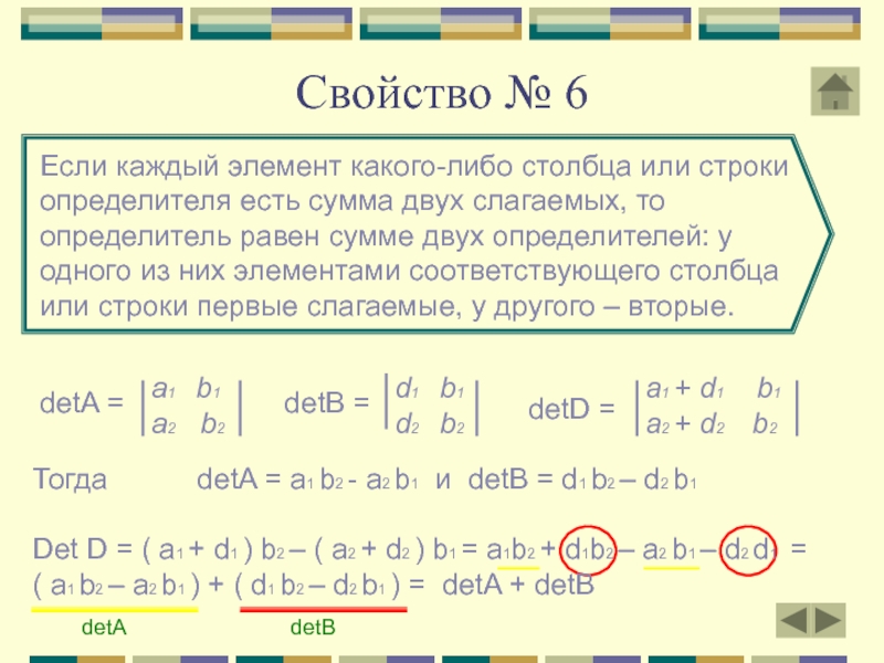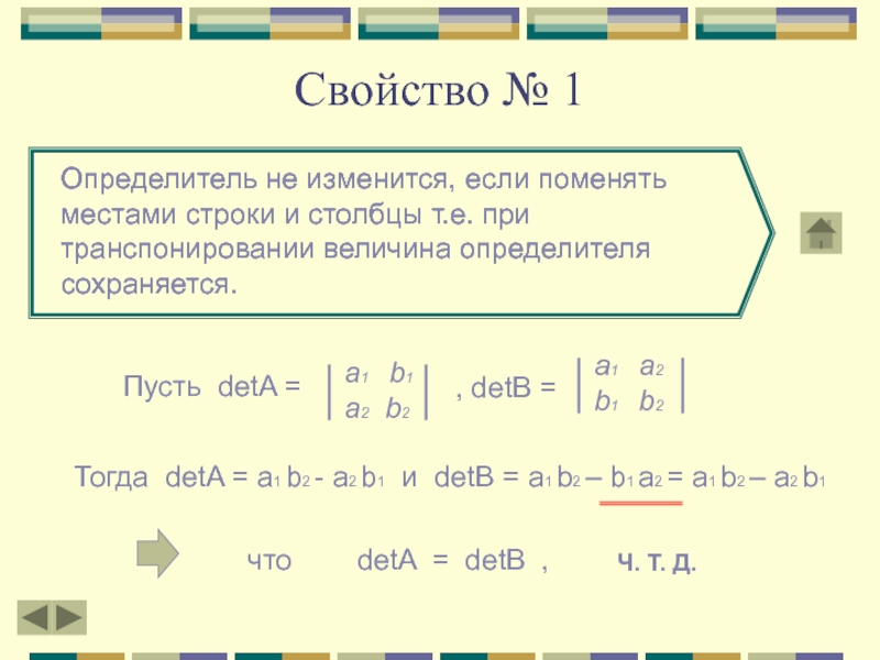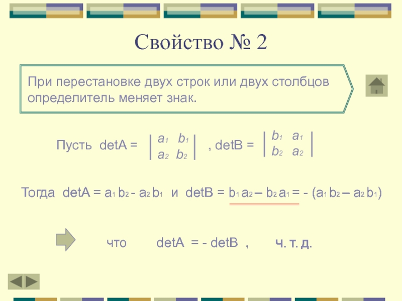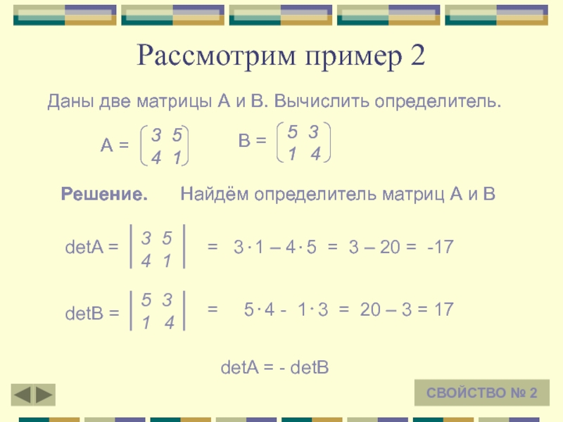 Тогда detA = a1 b2 - a2 b1 и detB = a1 b2 – b1 a2 = a1 b2 – a2 b1