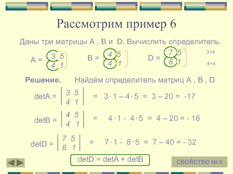 Найдём определитель матриц А , В , D