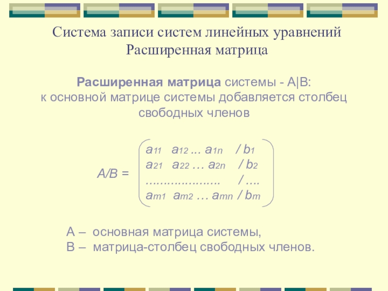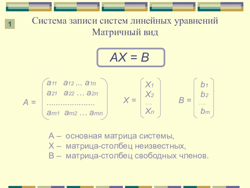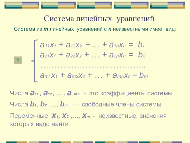 Система из m линейных уравнений с n неизвестными имеет вид: