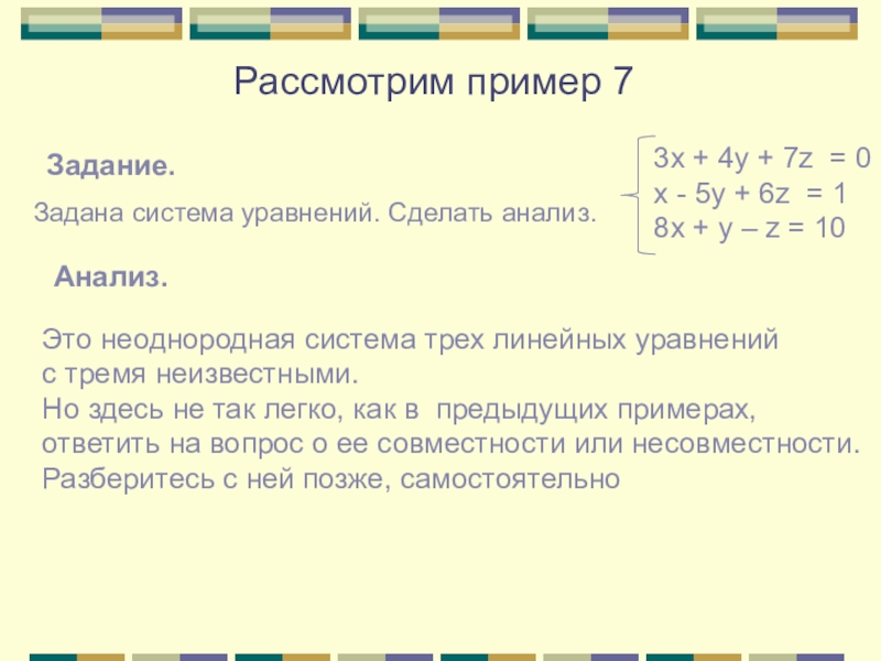 Задана система уравнений. Сделать анализ.