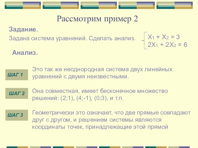 Геометрически это означает, что две прямые совпадают друг с другом, и решением системы являются координаты точек, принадлежащие этой прямой