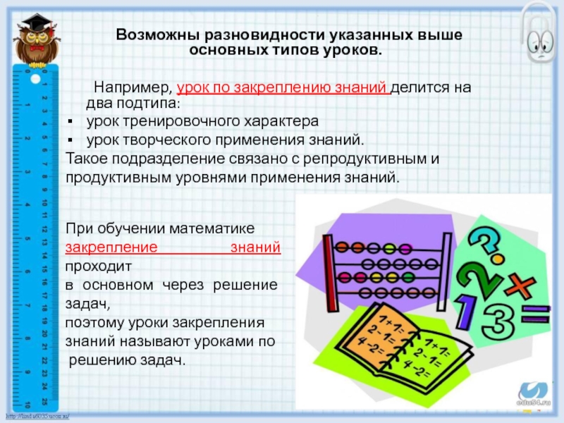 Слайд 28 Возможны разновидности указанных выше основных типов уроков.