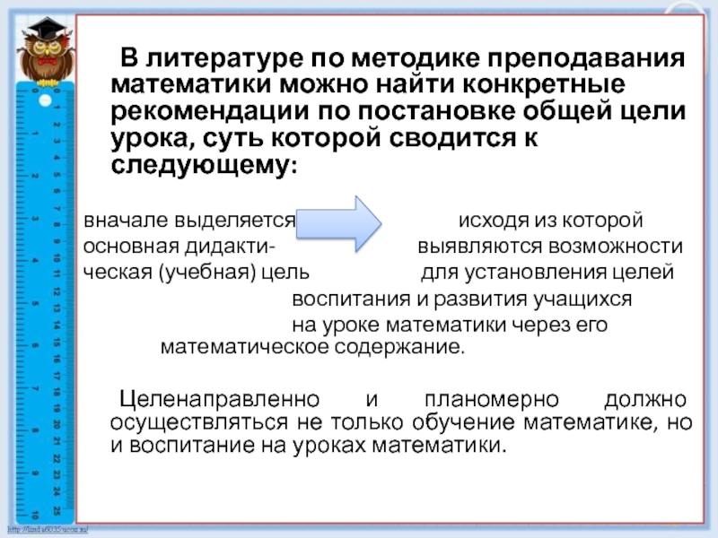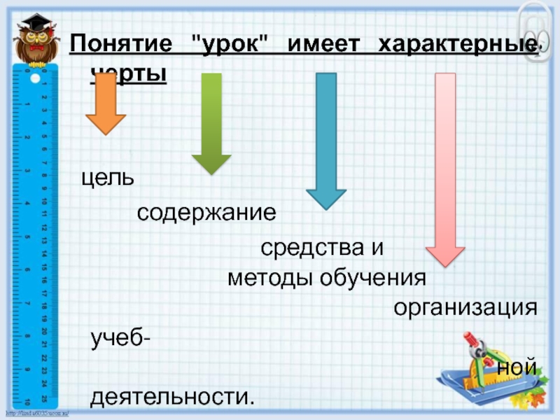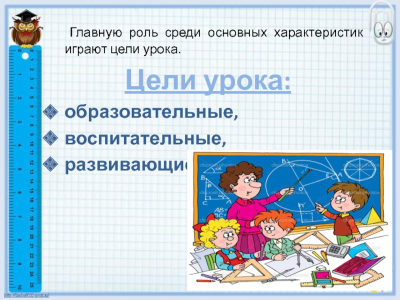 Слайд 6 Главную роль среди основных характеристик играют цели урока.