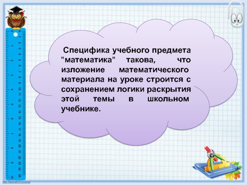 такова, что изложение математического материала на уроке строится с сохранением логики раскрытия этой темы в школьном учебнике.
