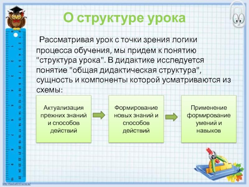 Рассматривая урок с точки зрения логики процесса обучения, мы