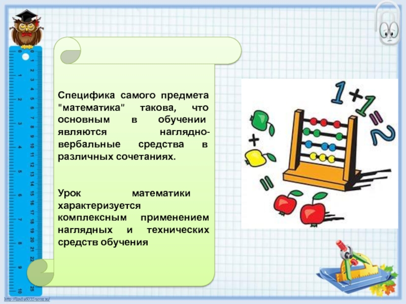 Урок математики характеризуется комплексным применением наглядных и технических средств обучения
