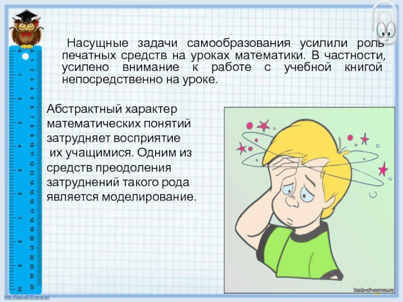 Насущные задачи самообразования усилили роль печатных средств на уроках математики. В