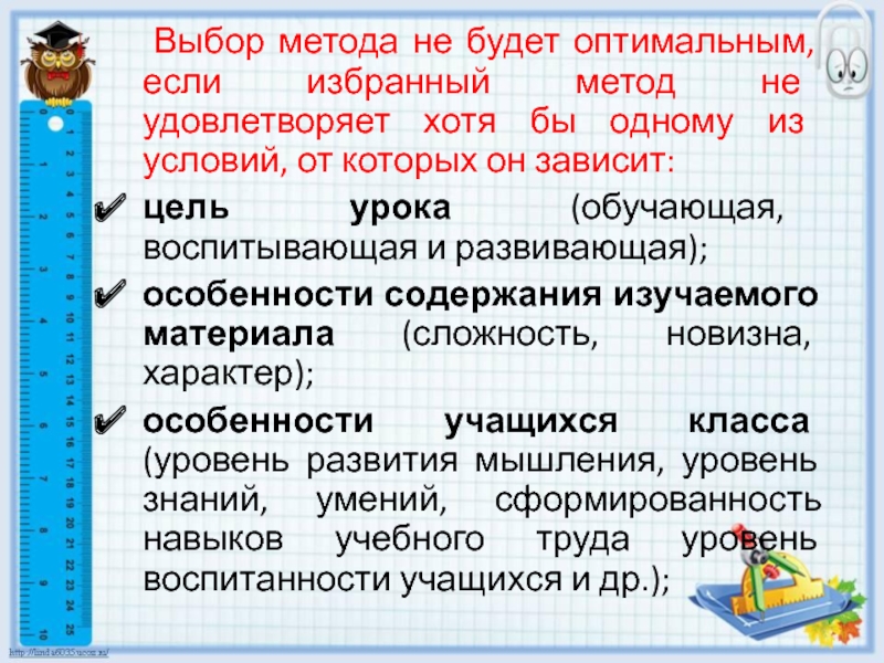 Слайд 12 Выбор метода не будет оптимальным, если избранный метод не удовлетворяет хотя