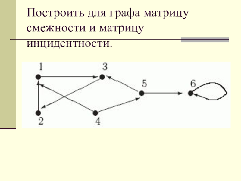 Слайд 7Построить для графа матрицу смежности и матрицу инцидентности.