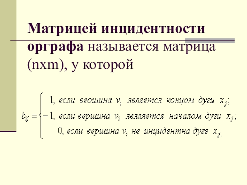 Слайд 3Матрицей инцидентности орграфа называется матрица (nхm), у которой
