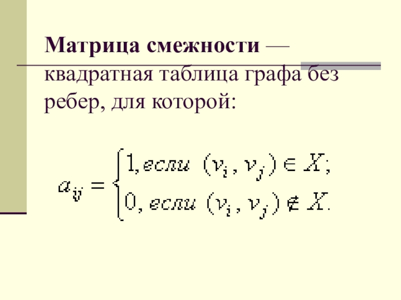 Слайд 4Матрица смежности — квадратная таблица графа без ребер, для которой: