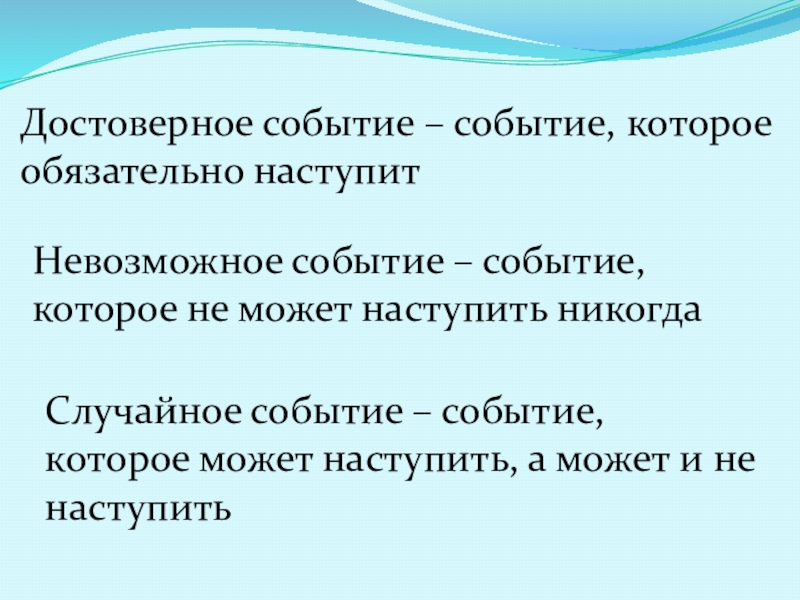 Случайное событие – событие, которое может наступить, а может и не наступить