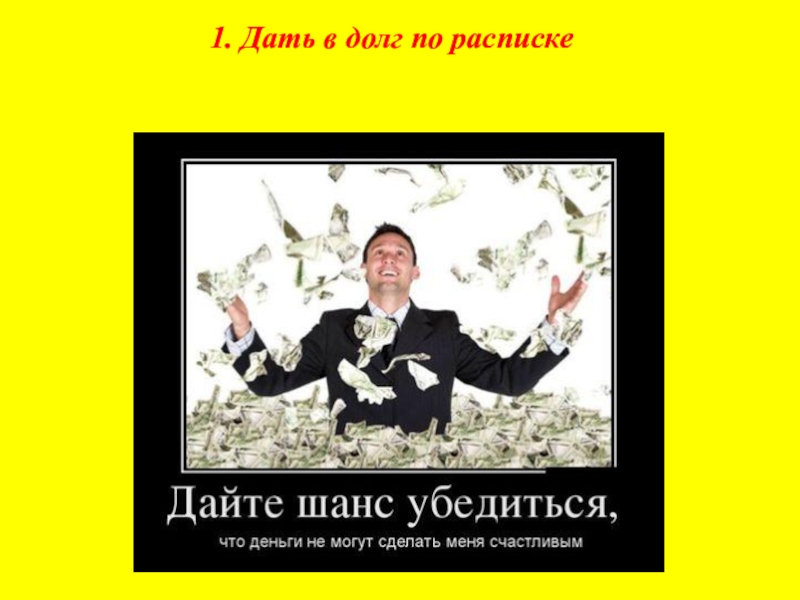 2. Если вы вместе с юристом составите договор займа и пропишете в нём залог имущества, которое хотя бы на 30% выше по рыночной стоимости, чем та сумма денег, которую вы предоставляете в качестве займа, то появится шанс вернуть эти деньги путём продажи имущества. Лучший вариант — залог недвижимости, где никто не прописан, особенно несовершеннолетние дети. И желательно, чтобы жильё было получено не путем приватизации. С автомобилями сложнее: желательно получить адвокатский запрос в МРЭО на предоставление информации, был ли автомобиль в залоге и не заложен ли он сейчас. И еще один очень важный момент. Категорически не рекомендуется выдавать займ наличными в валюте. Даже если текст расписки будет составлен юридически правильно, вернуть переданные денежные средства будет невозможно, поскольку по закону все операции с валютными средствами должны происходить только через банковский счёт.