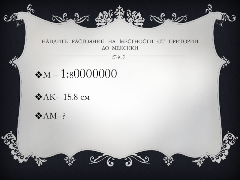 Найдите  растояние  на  местности  от  притории  до мексикиМ – 1:80000000АК- 15.8