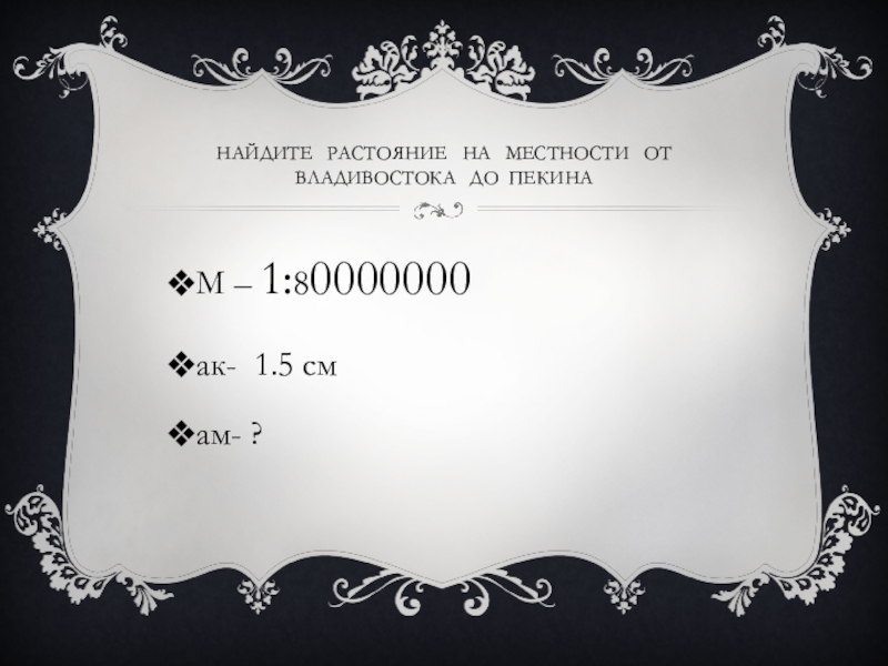 Найдите  растояние  на  местности  от  владивостока  до пекинаМ – 1:80000000ак- 1.5