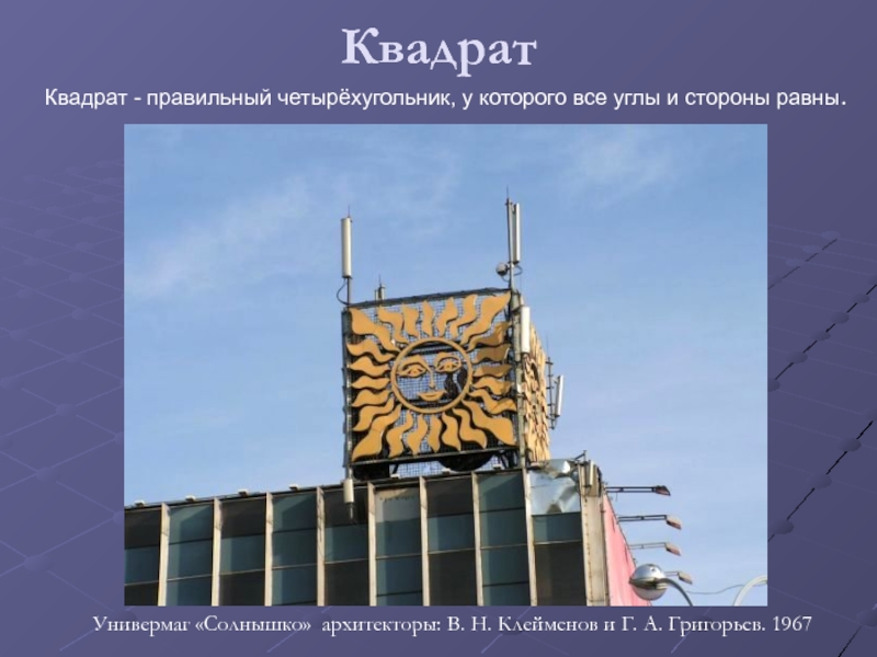Универмаг «Солнышко» архитекторы: В. Н. Клейменов и Г. А. Григорьев. 1967
