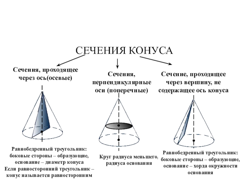 Равнобедренный треугольник: боковые стороны – образующие, основание – хорда окружности основания