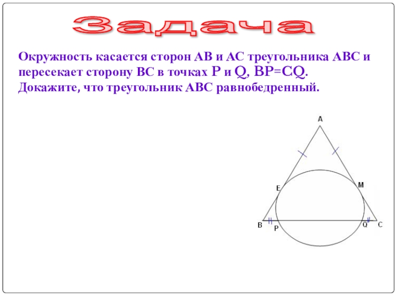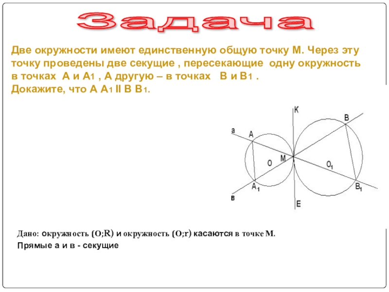 Две окружности имеют единственную общую точку М. Через эту точку проведены две секущие , пересекающие одну окружность в точках А и А1 , А другую – в точках В и В1 .