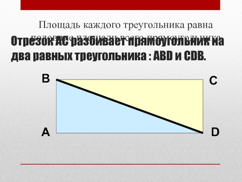 Площадь каждого треугольника равна половине площади всего прямоугольника
