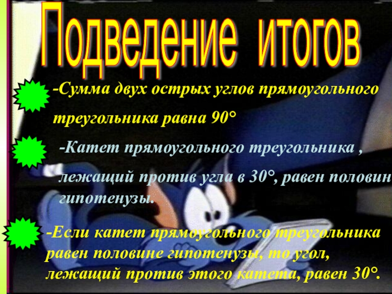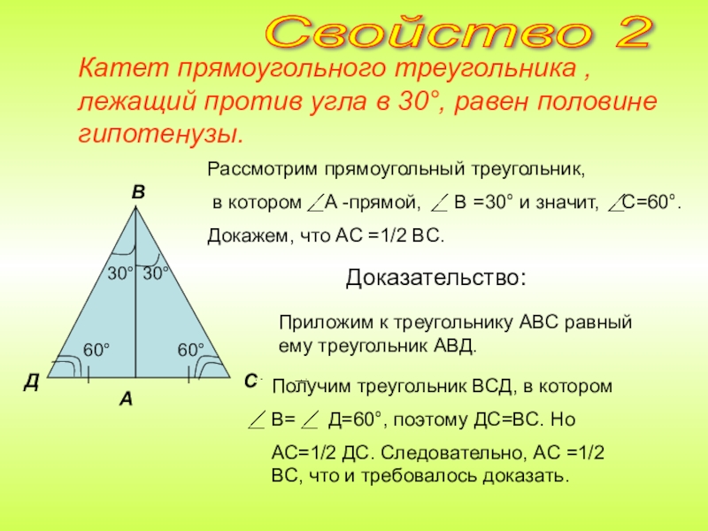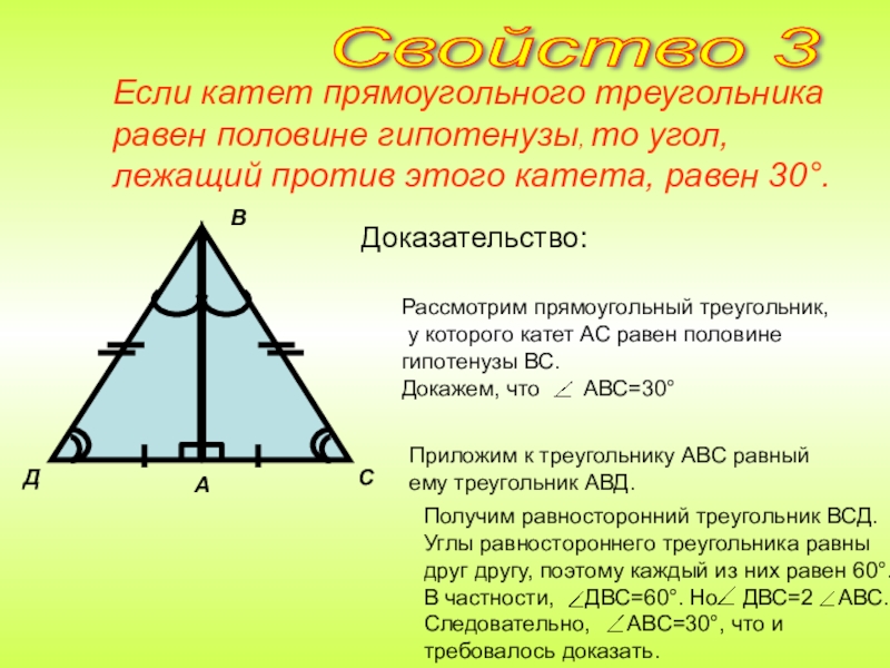 -Если катет прямоугольного треугольника равен половине гипотенузы, то угол,