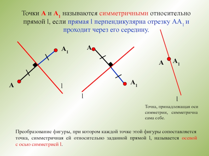 точка, симметричная ей относительно заданной прямой l, называется осевой