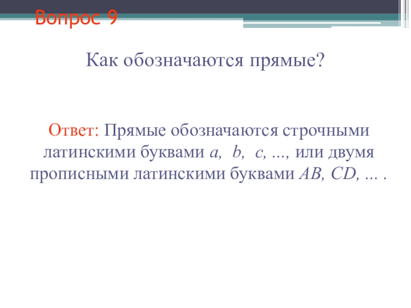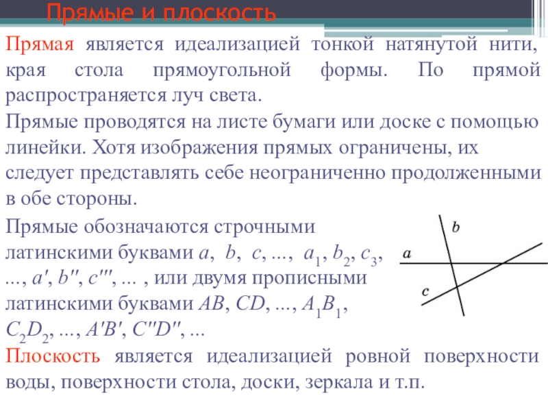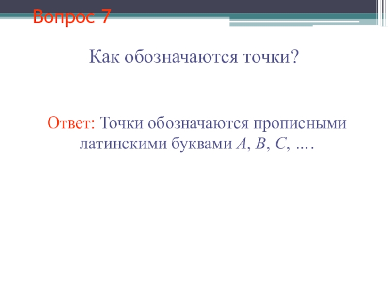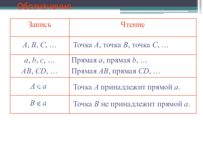 Точки обозначаются прописными латинскими буквами A, B, C, ..., A1, B2, C3, ..., A', B'', C''',...