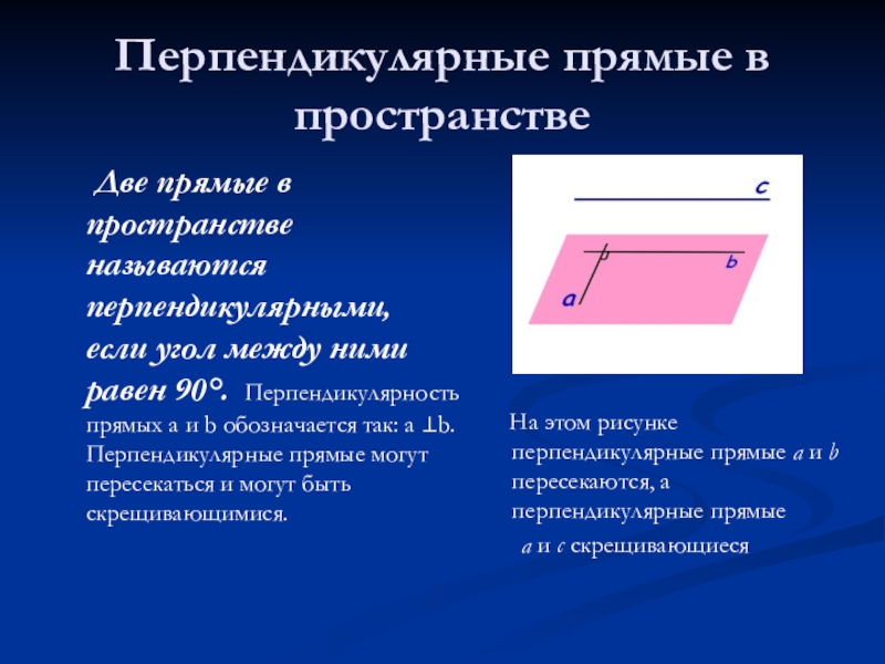 Через произвольную точку М пространства, не лежащую на данных прямых, проведём прямые а и с. Т.к. а ⊥с, то ∠АМС =90°
