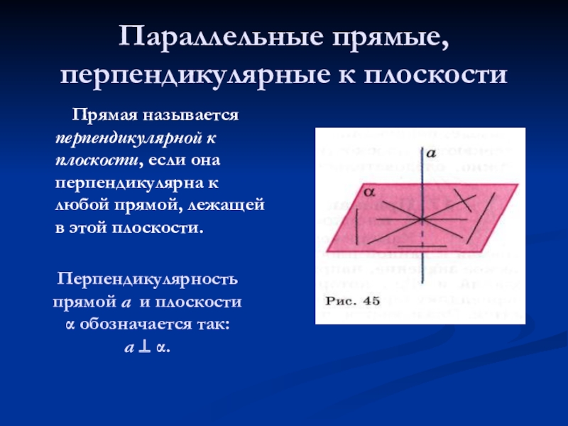 Перпендикулярность прямой a и плоскости α обозначается так: а ⊥ α.