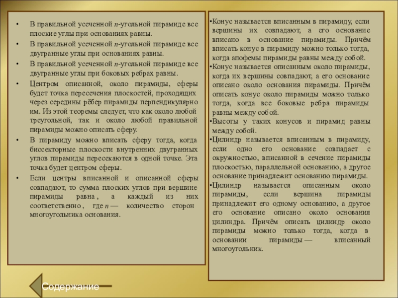 Усеченной пирамидой называется многогранник, заключённый между основанием пирамиды и секущей плоскостью, параллельной её основанию. Усечённая пирамида называется правильной, если пирамида, из которой она была получена — правильная