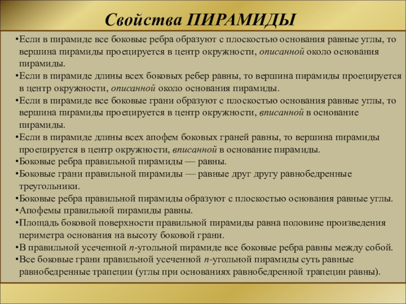 Пирамида называется правильной, если её основание — правильный многоугольник и все боковые ребра равны.
