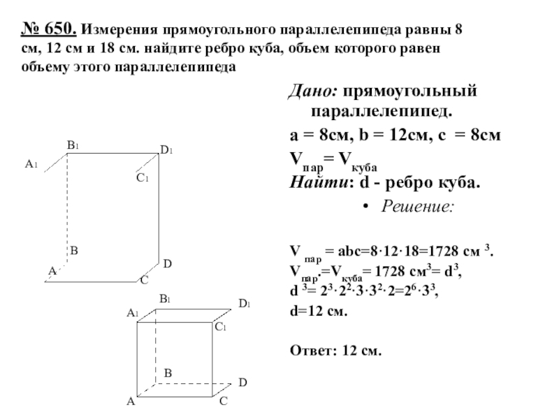 Дано: прямоугольный параллелепипед.