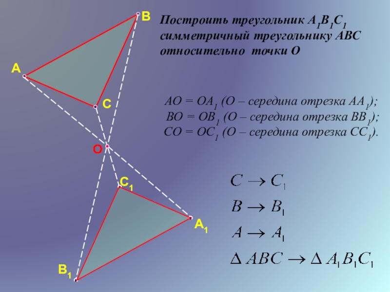 ВО = ОВ1 (О – середина отрезка ВВ1).
